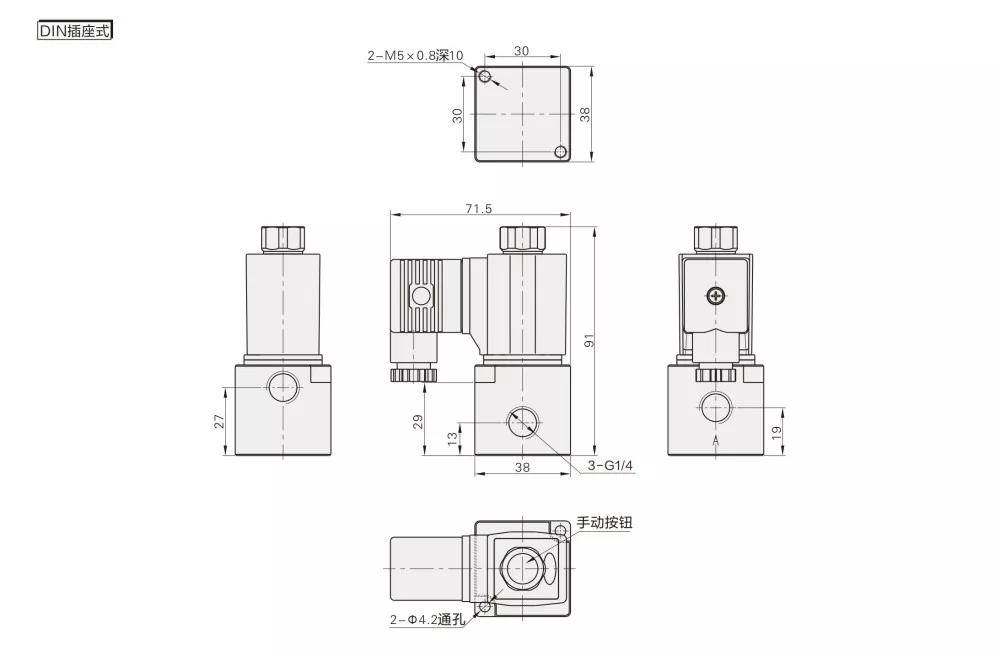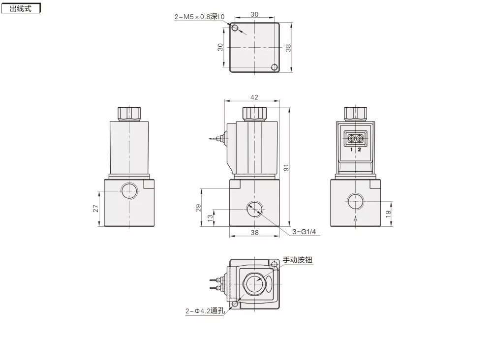 A: 3v2: Aliran tengah, cocog kanggo sistem kontrol pneumatik cilik