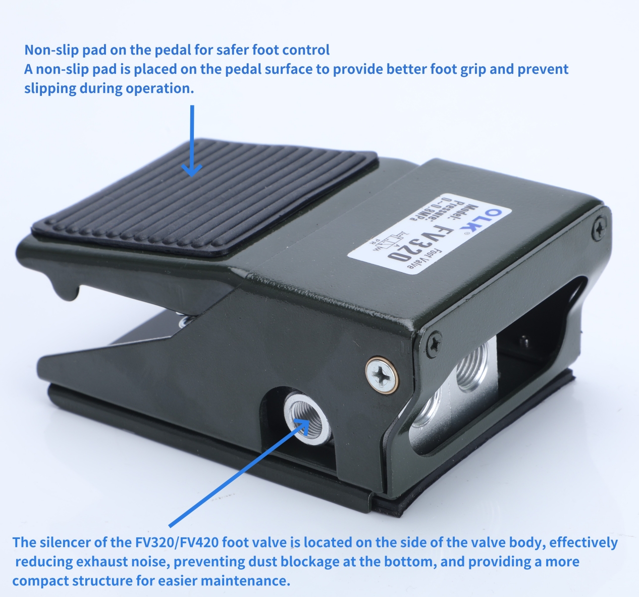 PAD sing ora ana slip diselehake ing permukaan pedal lan pangkalan katup kanggo menehi genggaman sikil sing luwih apik lan nyegah slipping sajrone operasi.