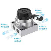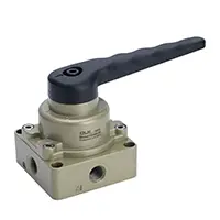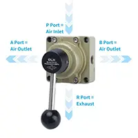 Ouangaika (Olk) katak sing dilakokno rong-port papat-port dioperasikake kanthi manual, kanthi ngalih path udara sing digayuh kanthi muter gagang katup. Dheweke gampang dioperasikake lan intuisi, mbutuhake sumber energi tambahan. Katelu port HV200B 2/4 nampilake silencer sing dibangun ing port exhaust.