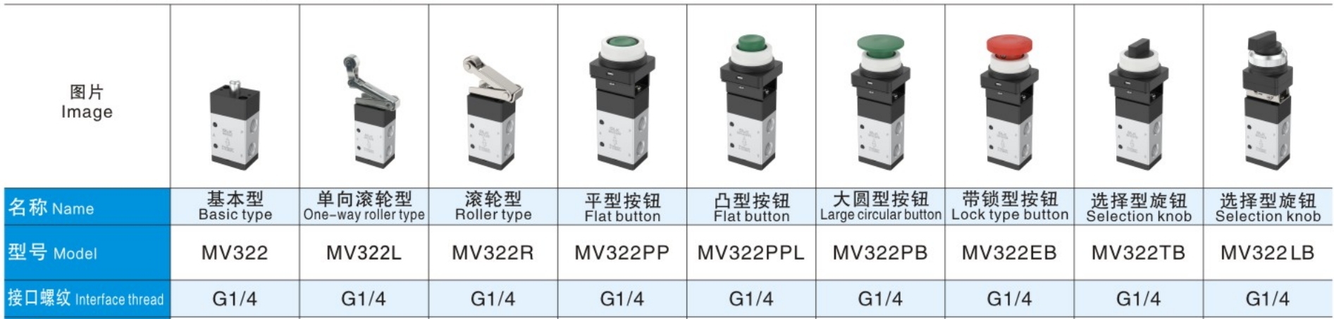 MV322 Tombol Mekanikal MV322 Seri Control Valve 3 Cara