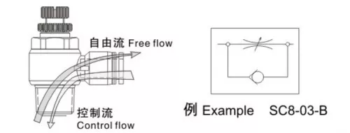 Saka simbol fungsional, kita bisa ndeleng manawa katup kontrol aliran lan mlebu minangka katup thrown, siji-sijine aliran mung siji arah nalika ngidini kanthi bebas. Kanggo silinder dobel, lemari throttle exhaust luwih disenengi kanggo nambah stabilitas gerakan silinder. Kanggo silinder tunggal sing tumindak, sing biasane nggunakake musim semi kanggo extension utawa mundur nalika ora ana sumber udara, gas kasebut kudu ngatasi kekuwatan musim semi sajrone operasi, dadi kontrol intine cocog kanggo kontrol kecepetan.