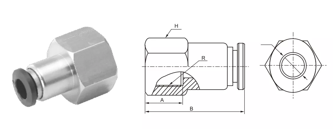 PCF Wanita Langsung Push Ing Tube Fitting Outline Parameter