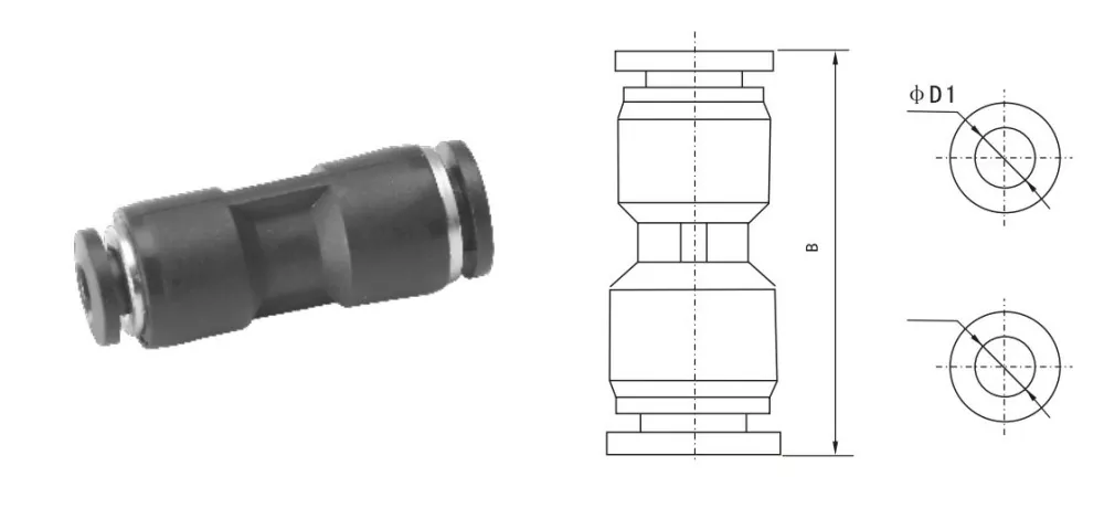 PU nyambungake selang udara sing padha ing sisih loro, PG nyambung selang hawa kanthi diameter ing loro-lorone