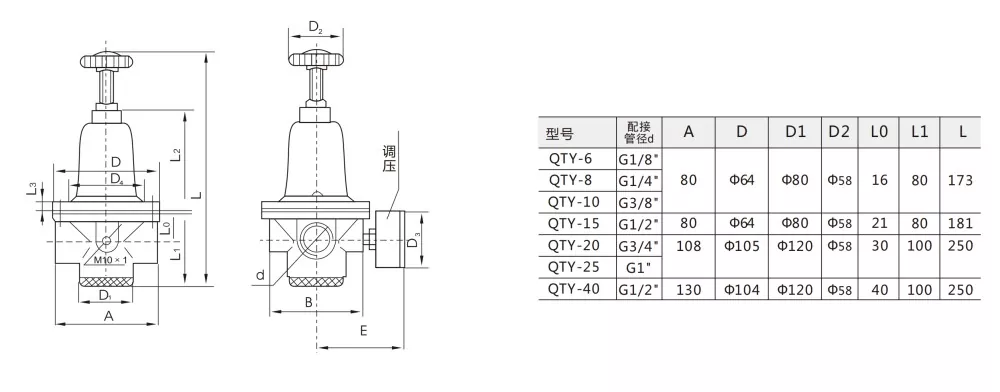 QTY: Regulator tekanan standar, cocog kanggo sawetara tekanan normal (medium kanggo aplikasi industri tekanan rendah).