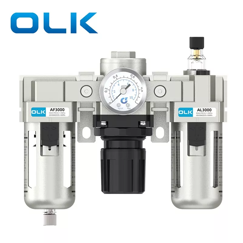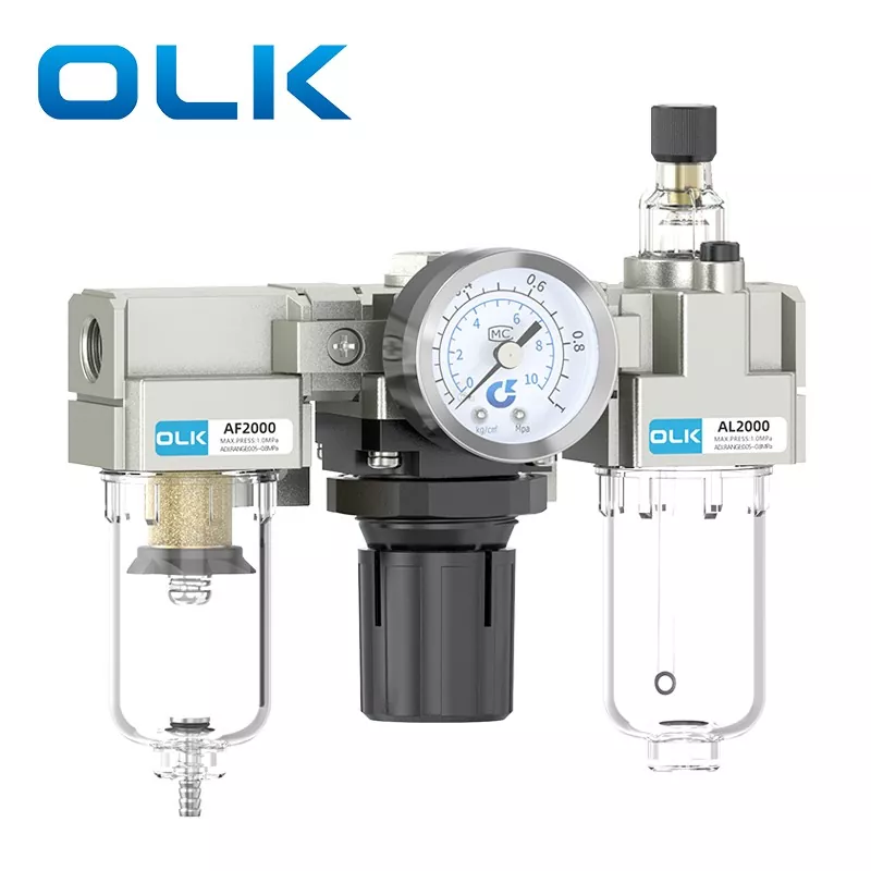Unit FRL AC Tipe SMC (Filter-Regulator-Lubricator) minangka komponen dhasar pneumatik sing nggabungake filtrasi sumber udara, pangurangan lan regulasi tekanan, lan perawatan pelumasan. Nyedhiyakake hawa kompres sing resik, stabil, lan lubricated kanggo sistem pneumatik, saéngga ndawakake umur komponen pneumatik lan nambah stabilitas sistem. Unit OLK AC Series FRL tumindak minangka "wali" penting sistem pneumatik modern.