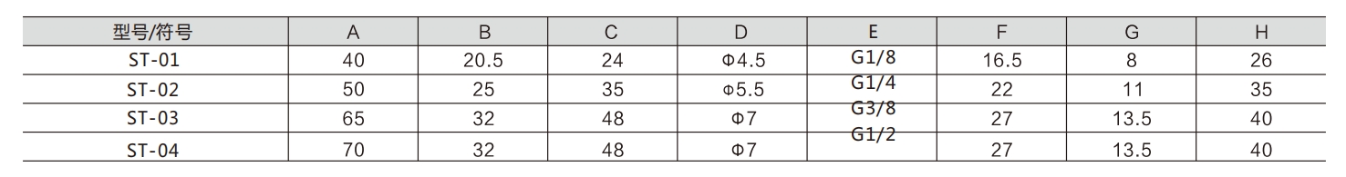 Yen fitting tabung udara ora dipilih kanthi bener, nyebabake intake udara utawa ekstra ing port dadi cilik banget, katup bisa ora shift, ndadékaké kabeh port sing disambung. Iki kudu dicegah. ST-01: G1 / 8; ST-02: G1 / 4; St-03: G3 / 8; ST-04: G1 / 2