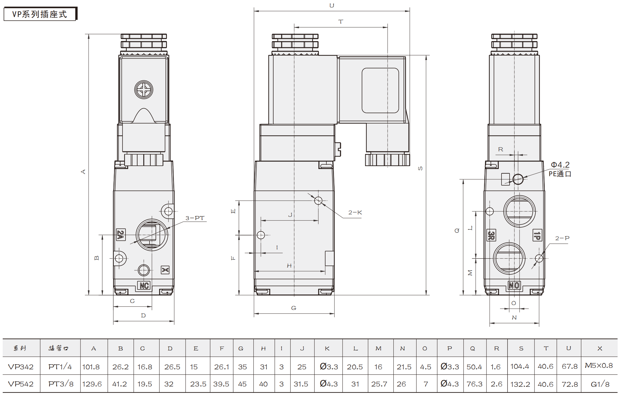 VP Series Solenoid katup 3 Cara Paramèter Seciditygenereral